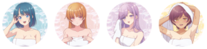 A3お風呂ポスター(汐&灯&るな&春 )+57mm缶バッジ4個セット(汐、灯、るな、春)