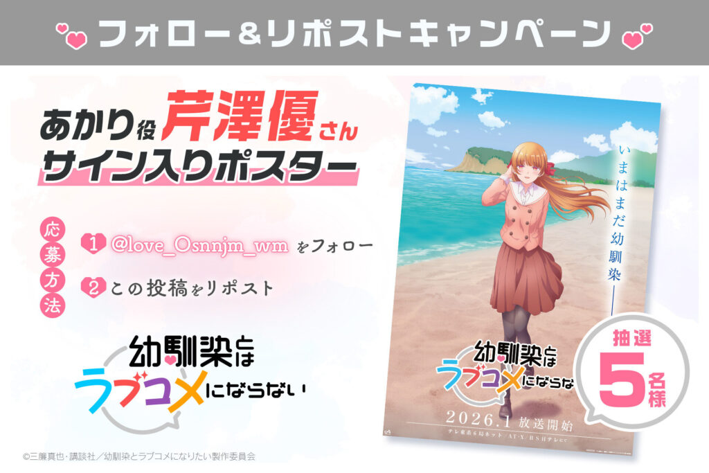 ①『幼馴染とはラブコメにならない』公式Xアカウント [@love_Osnnjm_wm] をフォロー